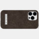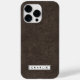 iphone case med en mörk brunt läder struktur (tryckt bild) och ditt namn i ett modernt, maskulinskt sans serif-teckensnitt. Observera att "läder" är en tryckt bild.