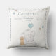 Den här anpassningsbarna, baby, har en söt illustration av vattenfärgen stil. En liten pojke-elefant bildas vid grund i täcket, med en blå hjärtformade ballong. En stapel av alfabetblock placeras framför honom. Ett exempel på namn trycks överst, följt av det nyfödda babyens födelseinformation. Datum, tid och vikt anges. Du kan anpassa kudden så att den innehåller ditt eget namn och annan text.