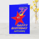 Den lilla lilla röda stjärnan i blå himmel med ett stjärnnummer fyllt på födelsedagen kommer att ge ett leende till en 7-åring och hacka finare. Lägg till barnets namn på framsidan om du vill anpassa det här födelsedagshälsningskortet. Det kommer att bli en värdefull keepy för deras speciella 7:e-födelsedag. Ursprunglig design av Anura Design Studio.