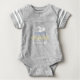 Det här är en roligt baby-kroppsdräkt för en simentusiaster. Bilden är ett piktogram av en simmare i vitt och blått. Den vita och gyllene färgaden "COACH I's charge!" kan vara personlig genom att lägga till namn eller en egen bildtext.