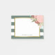 Personlig, chic post-it-anteckningar med guld ram, rosa och röd ros samt grönt och vitt rand.