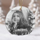 Enkel, elegant och minimal anpassningsbar två svartvitt foto och namn ornament. Anpassa med ett foto på framsidan och ett på baksidan i svartvitt. Elegant magisk snowy ram med ett eget namn i ett skript för elegant.