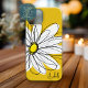 En vit daisy teckning med en solid färg-bakgrund och ett ställe för att lägga till en namn eller annan text. En modern, livlig hand plockade-design med trendig färg.