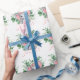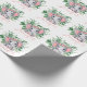 Template Personlig Namn, Watercolor Greenery, Elephant Flicka with Rosa Flowers, White Wrapping Papper