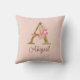 Anpassat Namn Guld Folie Rosé Rosa Rosor Bokstav A Kudde