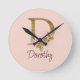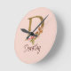 Anpassat Namn Guld Folie Rosig Rosa Rosor Bokstav Rund Klocka