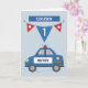 Anpassat namn kusin 1:a födelsedagsblå polisbil kort
