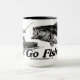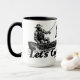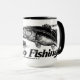 Låt oss gå och fiska med gamla stil-illustrationen mugg med en stor öring och en fiskänglare på en båt. Anpassa det med namn för en idealisk gåva till en man som kärlek utomhussport.