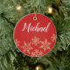 Anpassat namn och datum för Red och Guld med Snöfl Julgransprydnad Keramik