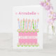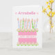 Ett mycket söt födelsedagskort för dig att anpassa dig på framsidan, med en rosa födelsedagskalas med många mönstrade ljus. Kakan är rosa, med en polkapunkt mönster och dekorerad med rosa, Albertine ro, som målas för hand i vattenfärg. "Grattis på födelsedagen!" står i matchande rosa på ett vitt band runt kakan. Ovanför ljusen finns det gott om utrymme för dig att lägga till mottagarens namn. Det inre meddelandet är bara ett förslag och du kan enkelt redigera det eller ta bort det om du vill.