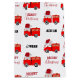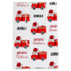 En söt illustration av en rödbrasa lastbil som bar en julhatt och dekorerade i ljus. Den beundransvärda röda eldmotorn rusar iväg för att släcka en brand. Perfekt för vem som helst och vilken ålder som helst. Ett favoritakut fordon. Anpassa namn och gör det till ditt eget.
