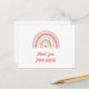 Säg tack på det söta sättet med detta pastell regnbåge tack vykort i mjuka rosa nyanser, perfekt för en flickas födelsedagsfest. Sött och lätt att anpassa med ditt meddelande, det är idealiskt för festsäljer, presenttack eller minnen.