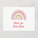 pastell regnbåge tackkort vykort i pastellrosa för flickors födelsedag.
