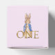 Anpassa den här Peter-kanindesignen och lägg till en namn-Peter-kanin i första födelsedag Tack för att du kom in i guld