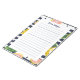 Denna lekfulla design kombinerar ett chic, nautiskt randmönster i marinblått och vitt med en ljus, överlappande kant av glada, illustrerade citrusskivor och tropiska blad. Det breda, linjerade skrivområdet är rent inramat och låter det färgglada mönstret sticka fram längs kanterna. Personaliseringen använder en spretig, handskriven skrivstil, vilket skapar en rolig, snygg-möter-tropisk estetik som får listskapande att kännas som en mini-semester.