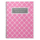Unik stationär kontorsanteckningsbok med personlig med bubbelgum rosa och vit lattice mönster, mörk grått-anpassad namnmall/subjekt titelmall. En söt och coola perfekt för back to school-prep.