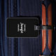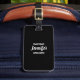 Anpassningsbarnas bagagetaggar med dekorativa dekorationsdekorationer. Elegant vit text på svart bakgrund. Redigera namn om du vill anpassa. Gift idé.