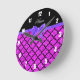 Anpassat namn vid rosa glitter moroccan lila bow rund klocka