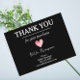 Vår anpassade tacksamhetskort för småföretag är det perfekta sättet att uttrycka din tacksamhet till kunder som stöttar ditt företag. Med elegant tack-typografi, ett charmigt akvarellhjärta och en anpassningsbar tack-meddelandemall mot en snygg svart bakgrund kombinerar detta vykort enkelhet, modernitet och professionalism i en iögonfallande design.