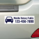 Marknadsför din notarius publicus-verksamhet med stil och flärd, även när du reser mellan möten eller springer ärenden runt stan. Det blir en genomtänkt present till alla notarius publicus eller låneombud som tillhandahåller juridiska tjänster till allmänheten. Denna djupblåa teckensnittsdesign för bilar passar vita och ljusa bakgrunder. Anpassa med ett telefonnummer eller annan text.
