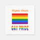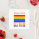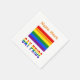 Pappra party napkins med Gay pride regnbåge Flagga och ord GAY PRIDE nedanför i regnbåge i brev. Ovanför är ett ställe för ett namn att skapa en personlig leta efter party eller evenemang. Eller lägg till någon annans namn för en anpassningsbar gåva. Om du vill kan du ta bort namn från designen och bara ha flagga med ord GAY PRIDE. Ändra färg och teckensnitt för namn genom att använda alternativet "redigera design".