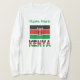 Personlig långärmad kvinnors T-shirt med den kenyanska Flagga med ord KENYA nedanför i flagga färg. Använda det utrymme som anges ovan för att lägga till ett namn, i grönt brev, för en beröring eller gåva av personlig. Roligt till bära till familjeåterförening, klubb eller resegrupp.