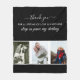 Skapa din egen filt i att älska minnet av någon speciell. Minnesordalydelsen är fullt redigerbar och lyder för närvarande: "Tack för en livstid av kärlek och lycka - sova i fred min älskling". Fotomallen är konfigurerad så att du kan överföra 3 av dina värdefulla foton, som visas i porträtt-format. Utformningen har en svart-vit palett färg med vit typografi.