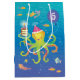 Blått, turkos och en grönt av bläckfisk med färglös fisk har en treskiktad kaka på sitt tentakel.Anpassa åldern på den här Gift Bag för din favorithavsurchins födelsedag.