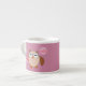 Fantastisk espresso mugg har ett sött brunt uggla med stort sömnig öga. Uggla håller en ballong för rosa av söt blek och en bukett med ljusa rosor inslagna i en blek rosa kon. Ballongen innehåller anpassade text så att du kan anpassa den för att fira alla åldrar från 1 till 100.