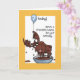 Ett roligt-födelsedagskort för att anpassa sig för vilken ålder som helst, med en kinkig mosa som njuter av den smälter chokladen. En ballong med nummer 7 är fäst vid dess antlers. Du kan ändra det inre meddelandet om du vill.