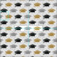 Neat rad tre studentmössor i svart, guld och silver över en subtil grått mönster. Perfekt för använda i en studenten eller en skjorta som gåva till pensionären. Neutralt färger går bra ihop med alla färg-skolväskor. Matchande produkter är tillgängliga.