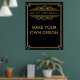 Anpassningsbar Art Deco-tecken - Gatsby 1920-talet Black & Guld Poster steg tillbaka in i glamor på de tjugonde roamingdagarna med den här Anpassningsbarna Art Deco-signatur. Med en svart bakgrund, guld gräns och elegant Art Deco-inspirerat typsnitt, kan detta tecken vara helt i personlig med er egen formulering för kostym hur som helst. Perfekt för att skapa ett unikt välkomsttecken, pub-meny, sätesdiagram eller party poster. Designat av Arty Apples är detta redigerbara tecken idealiskt för Underbar Gatsby party, Art Deco bröllop, 1920-talet, som talar lättnätter, eller glamoröst svartand-guld firande. Med sin djärva vintage stil är det perfekten att lägga till sofistikering och gnistra till din evenemangsdécor.