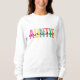 Visa av din roligt, färglöst, slit stil med den här personligen t-shirt! Den här designen har ett djärvt regnbåge i brev som stavar ut "AUNTIE" och ett anpassat namnöverlägg, och är perfekt för stolt moster som kärlek att stå ut med. Underbar för Mor-dagen, baby-meddelanden eller bara visa kärlek för dina präster och systerbarn. Anpassa namn för att göra det helt ditt!