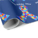 Vackert autismband fyllt med puzzel delar på ett sött blått omslag pappert för att stödja din autistiska vän eller familj på deras födelsedag. Anpassa med ditt eget grattis på födelsedagen-meddelande.