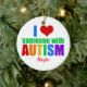 Jag kärlek någon med autism. Visa stöd för den speciella autistiska personen i ditt liv med denna söta, skräddarsydda julprydnad.. En underbar gåva till föräldrar till ett barn med autism eller aspergersyndrom. Jag kärlek min autistiska son eller dotter. En trevlig gåva till en syskon eller vän.