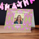 Färgfull Rosa Grattis på födelsedagen-fotokortets Anpassningsbar Ålder av artist © Cathy Thompson. Personlig med anpassningsbarnas foto och ålder.