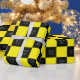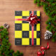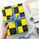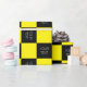 Anpassningsbar för Papper av omslagning av med svart och gult-krockprov. Personligens presentrullar för födelsedag, jul och annat. Kontrollerad mönster.