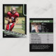 Vi presenterar vårt nyaste tillägg till världen av idrottssamfund: det amerikanska fotbollskortet. Designat med tanke på fotbollens verkliga aficionado skryter detta kort med en pulserande grönt, vit och svart färg palett som förkroppsligar spelets anda. På framsidan har du möjlighet att anpassa detaljerna i nyckel, t.ex. teamet namn, spelarens namn, position och jersey-nummer, så att varje kort blir en unik hemsida till din favoritidrottsman. Vänd över den för att visa upp en skatteterveva med statistik och insikter som ger spelarens bakgrund och prestanda en djup bild. Från födelsedatum, stad och stat till höjd, vikt och kastande preferenser fångas varje aspekt av spelarens resa noggrant. Spåra sina karriärmilstolpar med mått som spel, försök att passera, komplikationer, totalt antal utlösta varv, tuchdown och avlyssning, vilket ger en heltäckande översikt över deras inverkan på grikonen. Det här kortet, som är uppbyggt med ett dynamiskt sans serif-teckensnitt, utstrålar energi och upphetsning, vilket återspeglar den adrenalindrivna intensiteten i den amerikanska fotbollen. Oavsett om du firar en stellarsäsong, hedrar en älskad spelare eller söker efter perfektens högre nattgåva, kommer vårt fotbollsvisitkort säkert att glädja fläkt i alla åldrar. Upplev hur spännande spelet är som aldrig förr med anpassadet American Football Trading Card - ett tidlöst nyckelspel som firar fotbollens hjärta och själ.