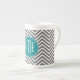 Anpassningsbar av Teal Charcol Chevrons Benporslin Mugg