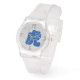 Anpassadets blå ideogram för tigern på pappra illustration som bakgrund. Du kan enkelt ändra år och färg i ideogrammet genom att klicka på anpassningsknappen. Utformning på Silicone Strap Clear watch med unga stil-nummer. Perfekt för kinesiska nyåret för tigern eller födelsedagen (människor födda under tigeråret).