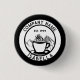 Snyggt anpassade, svart och vit kaffebryggare, namn badge-knapp, med ett redo gjort trendig runt logotyp med berg och en brinnande kopp av kaffe, omgiven av ett snyggt-typsnitt som du kan anpassa med dina företag namn, anställda namn och affärsetablerat datum.