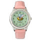 Anpassningsbar barn titta med söt honungsbin teckning. Personligens handklockor för barn. Girly Birthday eller julklapp för små flickor. Djurvektordesign för vilda djur. Gör din egen tidsvaktare för dotter, barndotter, barnbarn osv. Lägg till ditt eget namn eller monogram brev för barn. Grönt Polka dots, mönster. Roligtens typografimall. Rosa läderband.