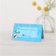 Anpassningsbar placerar kort med strand bollar, bassäng paraplyer och andra garvämnen med ett reflextypsnitt på en vågigt havsblå bakgrund