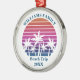 Coola anpassningsbar strand solnedgång är prydnadsföremål för ett målbröllop eller resa till en ö. Cute personlig presenter eller familjeåterföreningsgåvor med söt rosa framför vackra handflatan träd.