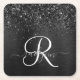 Anpassningsbar Black Glitter Gnistra Monogram Underlägg Papper Kvadrat