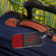 Anpassningsbar Black Red Faux Leather Monogrammed Bagagebricka