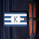 Anpassningsbar Blåstrimlad monogramresagg Bagagebricka