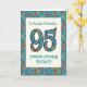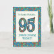 Ett ålderspecifikt födelsedagskort för en nittiofem-åring som ska anpassas, med nummer 95 och gräns fyllt med ett färgstarkt blommönster på tealbakgrund. Blommönstret är en del av "Granny Print"-samlingen Posh & Painterly, från en handmålad papper kollage av Judy Adamson. Den här designen passar alla storlekar på gratulationskort.