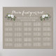 Tunga och taupe Blommigt Sättdiagram över utandningsljud i bröllop. En del av en samling i bröllop.