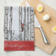 Anpassningsbar Blue Birch Träd och Red Cardinal Bi Kökshandduk